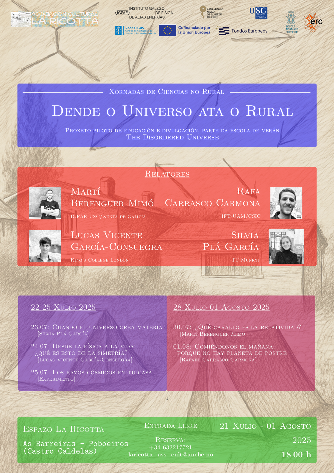 10-21/08/2026: Summer School: The Disordered Universe 2026, Espazo La Ricotta, As Barreiras (Castro Caldelas, Ourense)