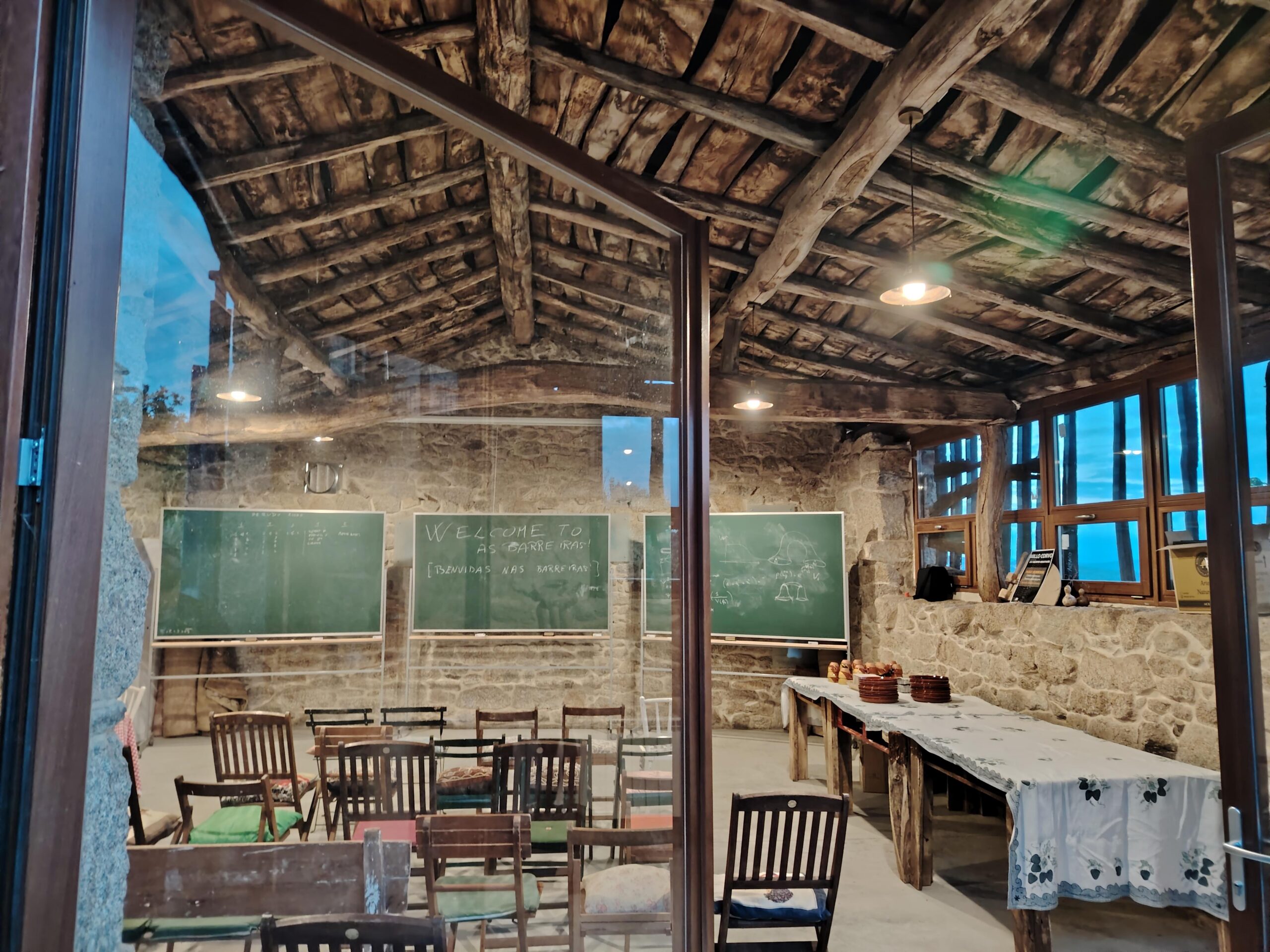 A los ponentes se les ofrece alojamiento en una casa tradicional gallega, mientras que los participantes se alojan en tiendas de campaña individuales equipadas con colchoneta hinchable, saco de dormir y toalla.